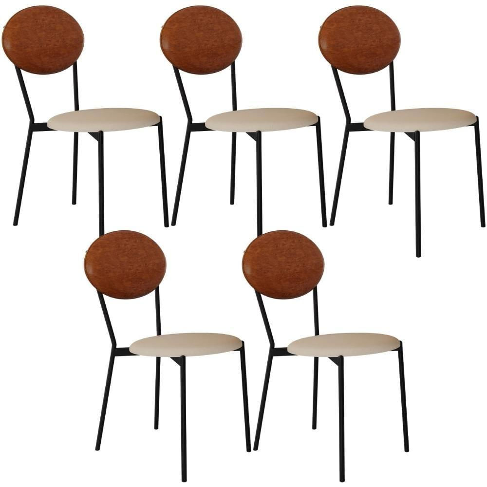 Kit 05 Cadeiras Estofada Para Sala De Jantar Azuri Preto C01 Linho Areia Courino Caramelo - Lyam Decor
