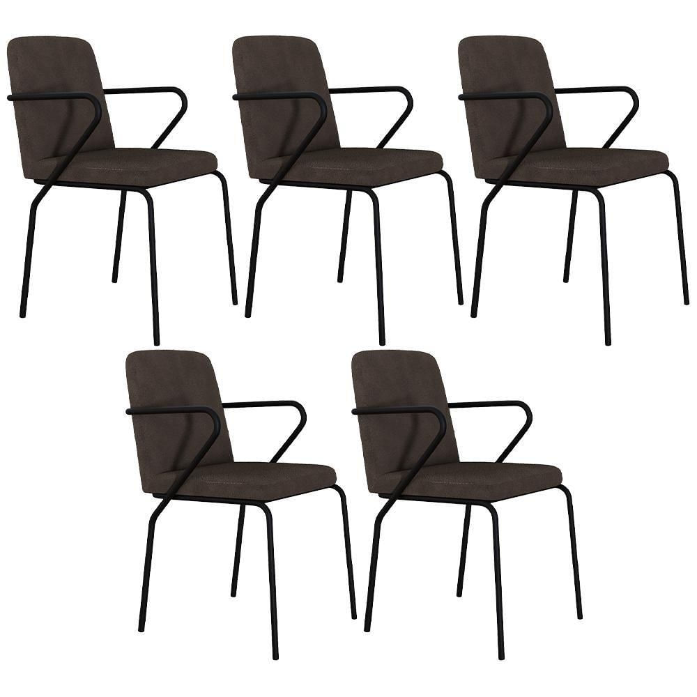 Kit 05 Cadeiras Estofada Para Sala De Jantar Com Braço Loft Preto C01 Bouclê Marrom - Lyam Decor