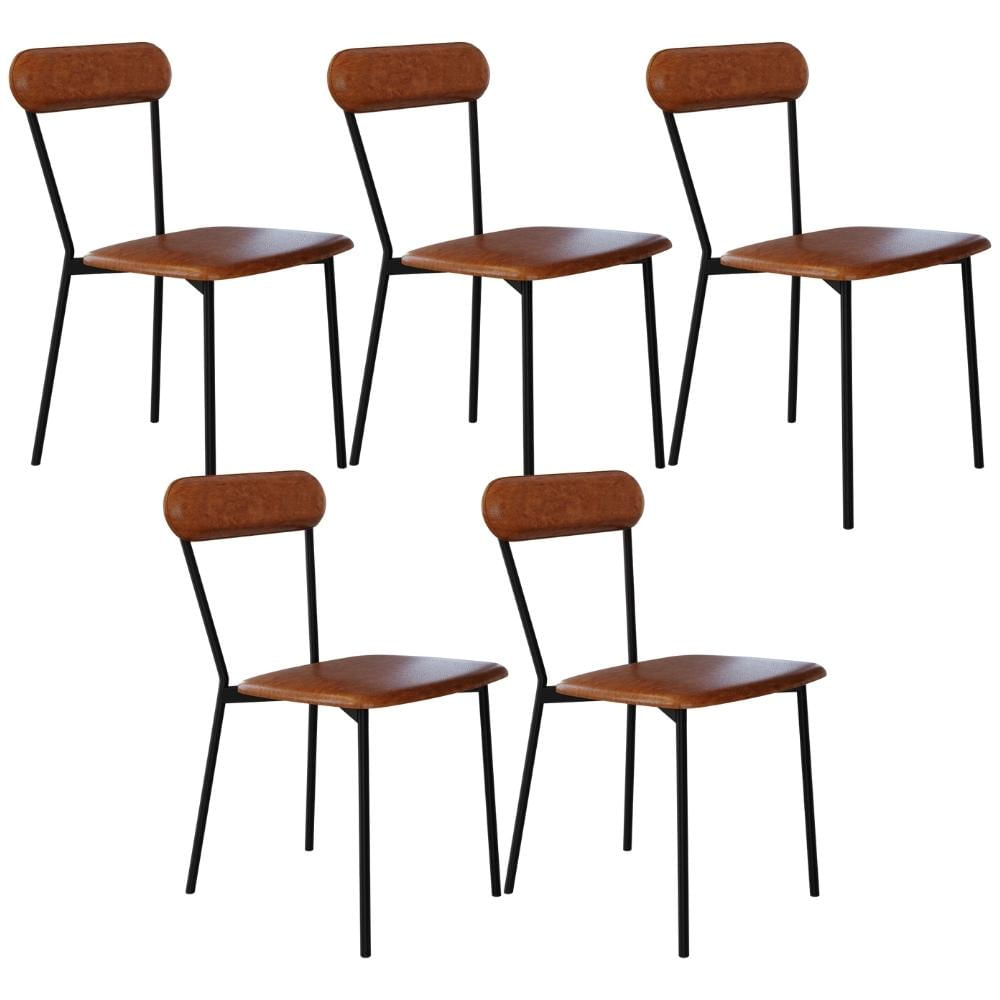 Kit 05 Cadeiras Estofada Para Sala de Jantar Liora Preto C01 Courino Caramelo - Lyam Decor