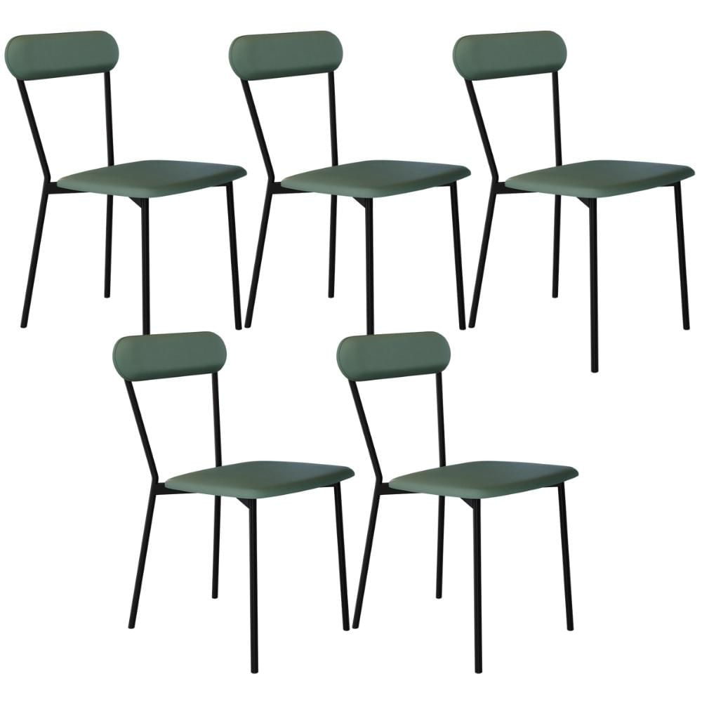 Kit 05 Cadeiras Estofada Para Sala de Jantar Liora Preto C01 Courino Verde Sálvia - Lyam Decor
