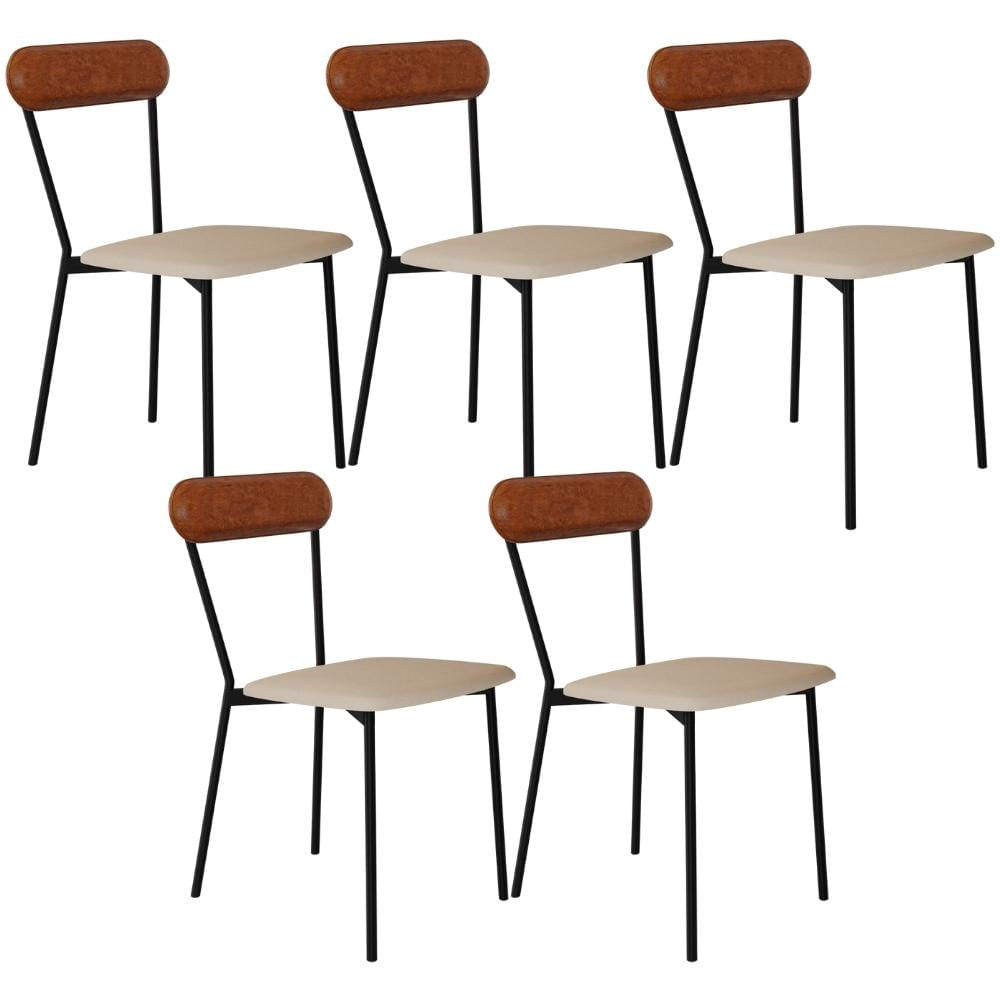 Kit 05 Cadeiras Estofada Para Sala de Jantar Liora Preto C01 Linho Areia Courino Caramelo - Lyam Decor