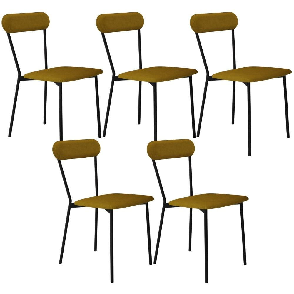 Kit 05 Cadeiras Estofada Para Sala de Jantar Liora Preto C01 Linho Mostarda - Lyam Decor