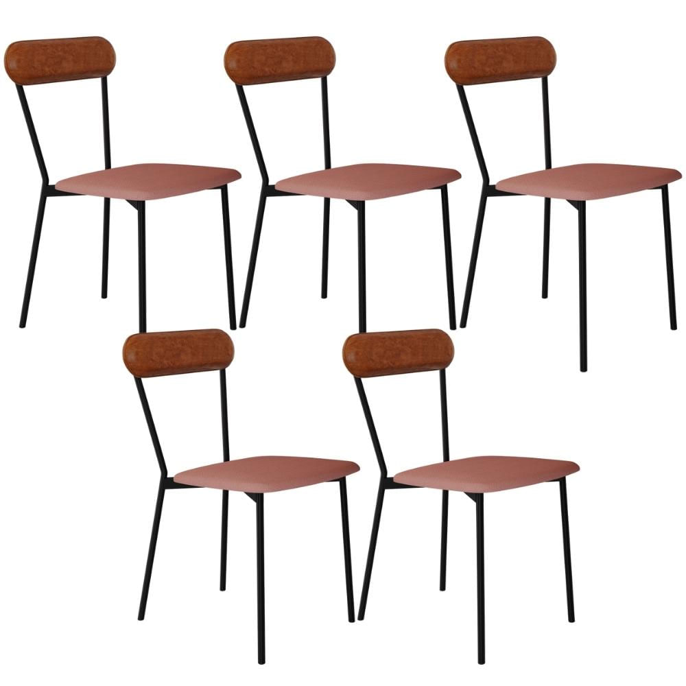 Kit 05 Cadeiras Estofada Para Sala de Jantar Liora Preto C01 Linho Rosê Courino Caramelo - Lyam Decor