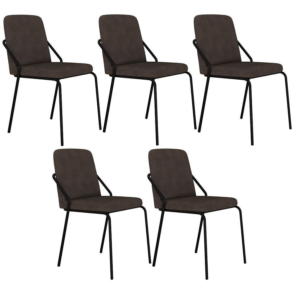 Kit 05 Cadeiras Estofada Para Sala De Jantar Loft Preto C01 Bouclê Marrom - Lyam Decor
