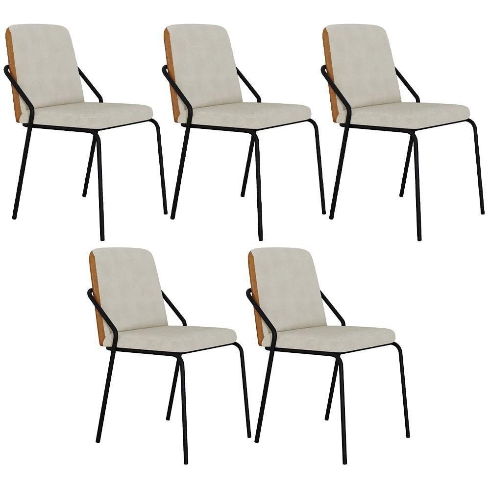 Kit 05 Cadeiras Estofada Para Sala De Jantar Loft Preto C01 Bouclê Vanilla Courino Caramelo - Lyam Decor
