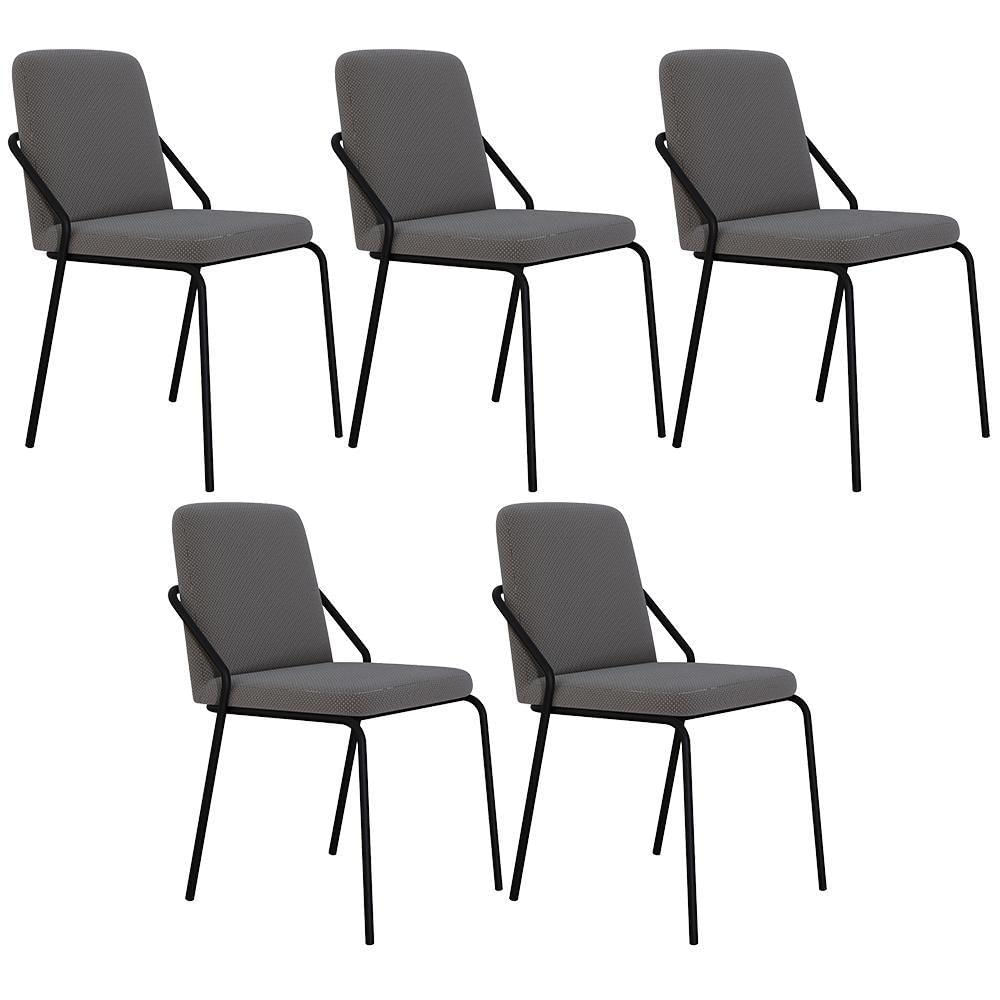 Kit 05 Cadeiras Estofada Para Sala De Jantar Loft Preto C01 Linho Fendi Cinza - Lyam Decor