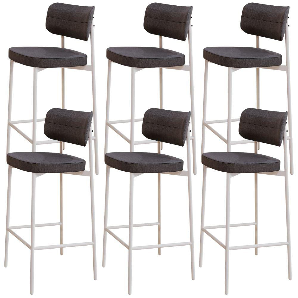Kit 06 Banquetas Alta Bar Cozinha Sala De Jantar Aço Branco Kaira C01 Linho Preto - Lyam Decor