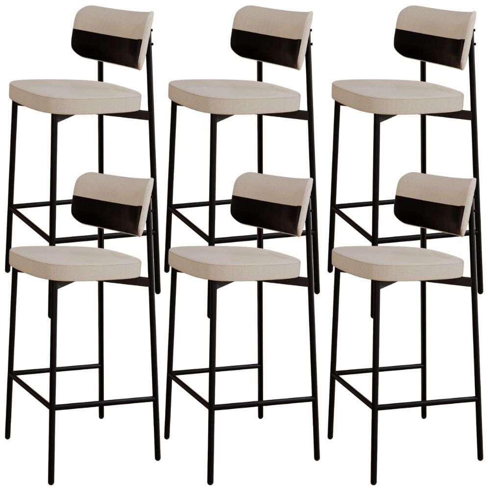 Kit 06 Banquetas Alta Bar Cozinha Sala De Jantar Aço Preto Kaira C01 Linho Areia Courino Preto - Lyam Decor