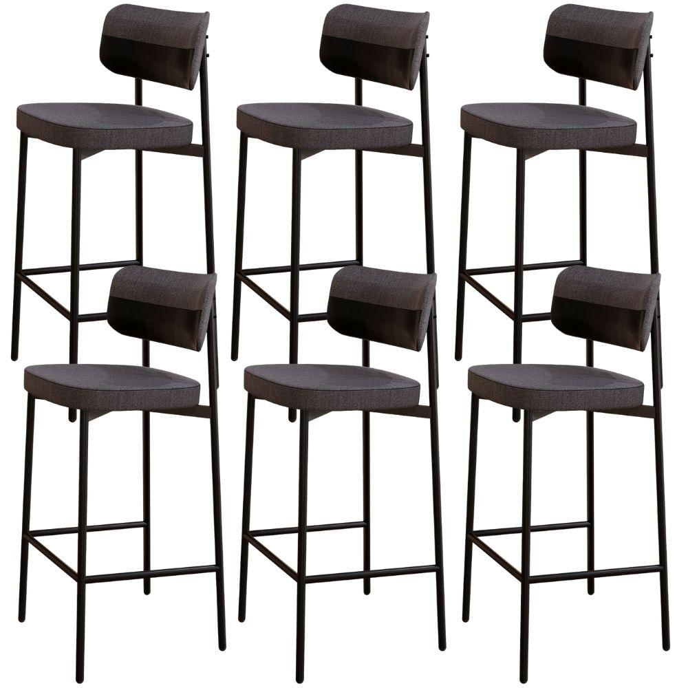 Kit 06 Banquetas Alta Bar Cozinha Sala De Jantar Aço Preto Kaira C01 Linho Preto Courino Preto - Lyam Decor