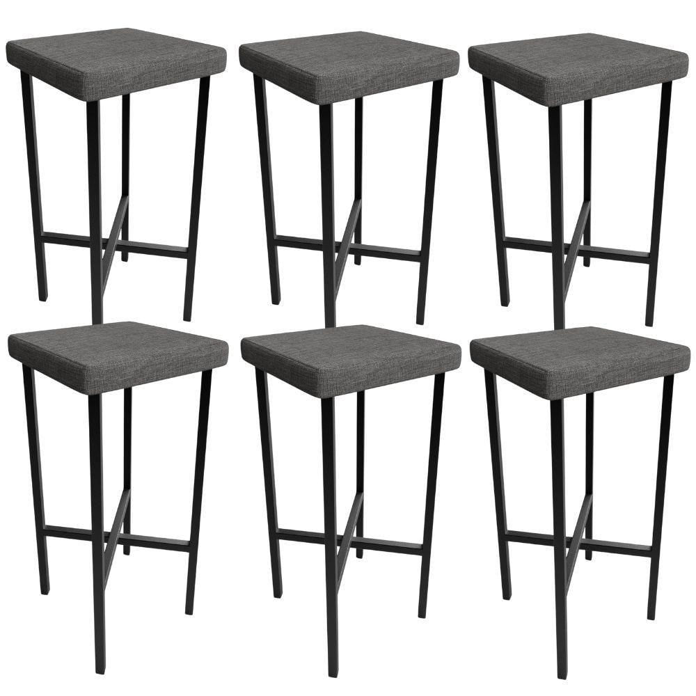 Kit 06 Banquetas Alta Bar Cozinha Sala De Jantar Preto Stella L02 Linho Cinza Escuro - Lyam Decor