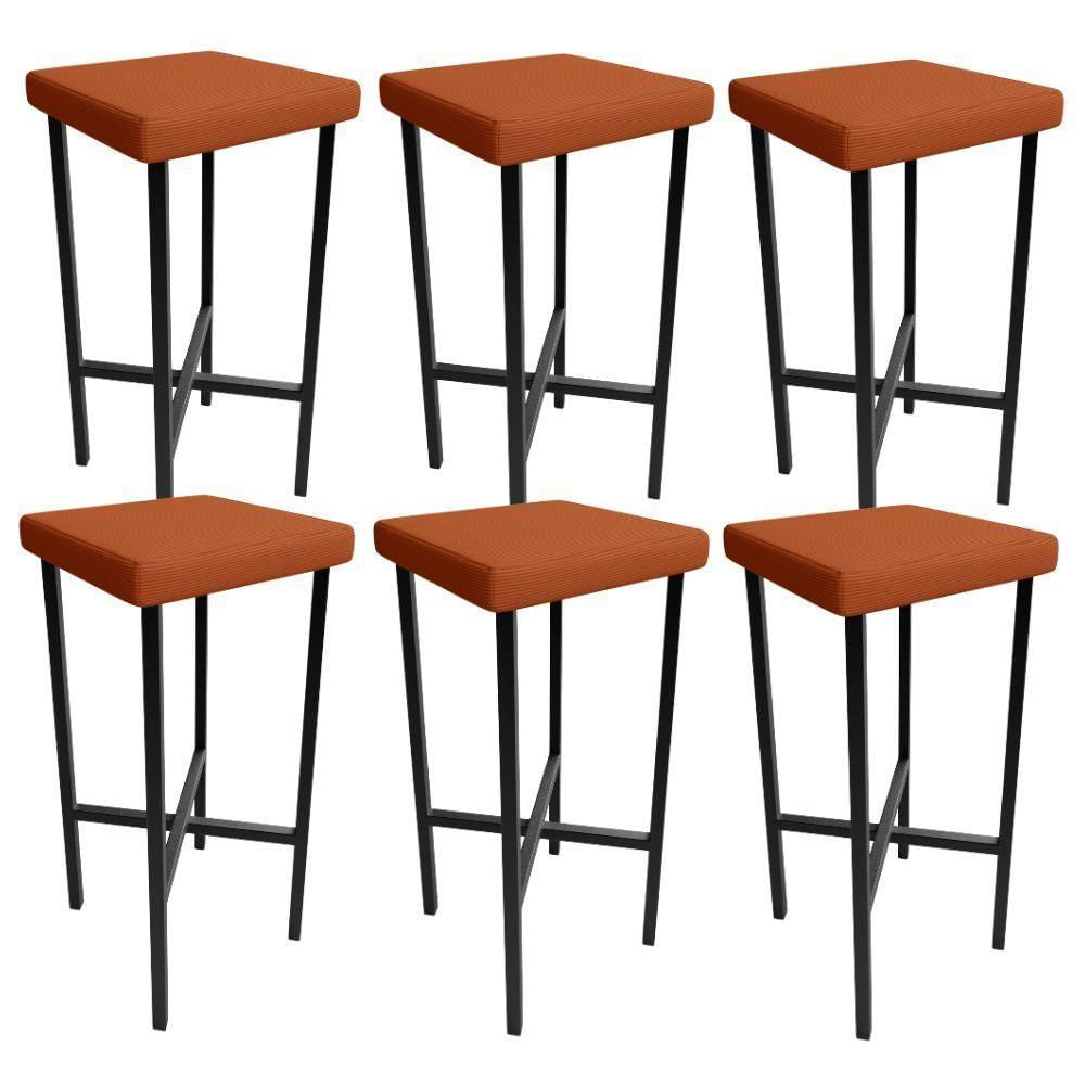 Kit 06 Banquetas Alta Bar Cozinha Sala De Jantar Preto Stella L02 Tecido Terracota - Lyam Decor