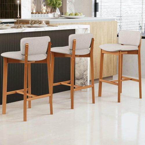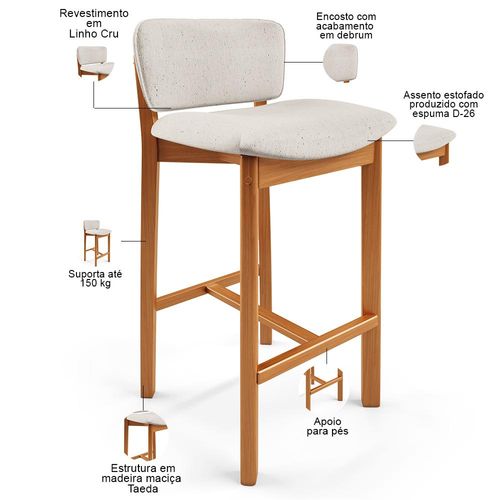 Kit 06 Banquetas Alta Para Cozinha Sala de Jantar Bar Dara L02 Linho Cru - Lyam Decor