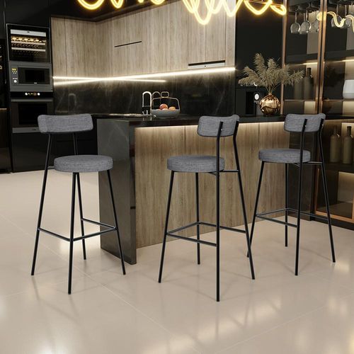 Amplamente moderna, dispondo de muito realce e design singular, O Kit 06 Banquetas Altas Bar Cozinha Sala De Jantar Estrutura Em Aço Milão L02 Linho Cinza Escuro - Lyam Decor vem com a personalidade e elegância que sua decoração merece! Estruturada em aço carbono, contrasta lindamente com o encosto e assento estofados, cabe mencionar ainda seu revestimento em Linho, é confeccionada por materiais de excelente qualidade, extremamente resistentes e aconchegantes. Possui altura ideal, garantindo o encaixe perfeito no ambiente, otimizando seu espaço e promovendo máximo conforto. Pode ser disposta em bancada, cozinha americana, área gourmet ou home bar, as possibilidades são infinitas e as combinações ficarão perfeitas. Adquira já a sua!! Dimensões do Produto (L x A x P) 44 x 100 x 52 cm Medidas Internas: Altura do chão ao assento: 75 cm Altura do chão ao apoio para pés: 29 cm Altura do assento: 6 cm Largura do assento: 34 cm Altura do assento ao encosto: 26 cm Altura do encosto: 11 cm Largura do encosto: 40 cm Profundidade do encosto: 6 cm Características: