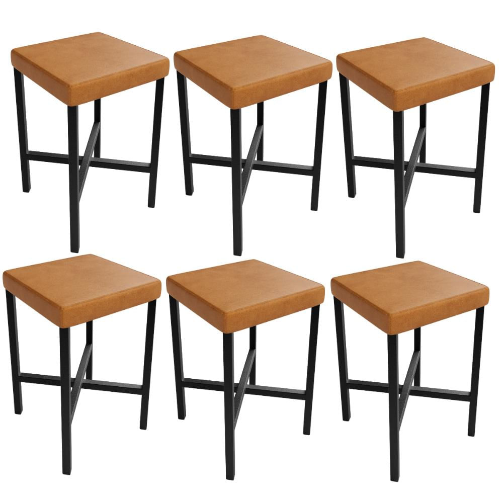 Kit 06 Banquetas Baixa Bar Cozinha Sala De Jantar Preto Stella L02 Couríssimo Canela - Lyam Decor