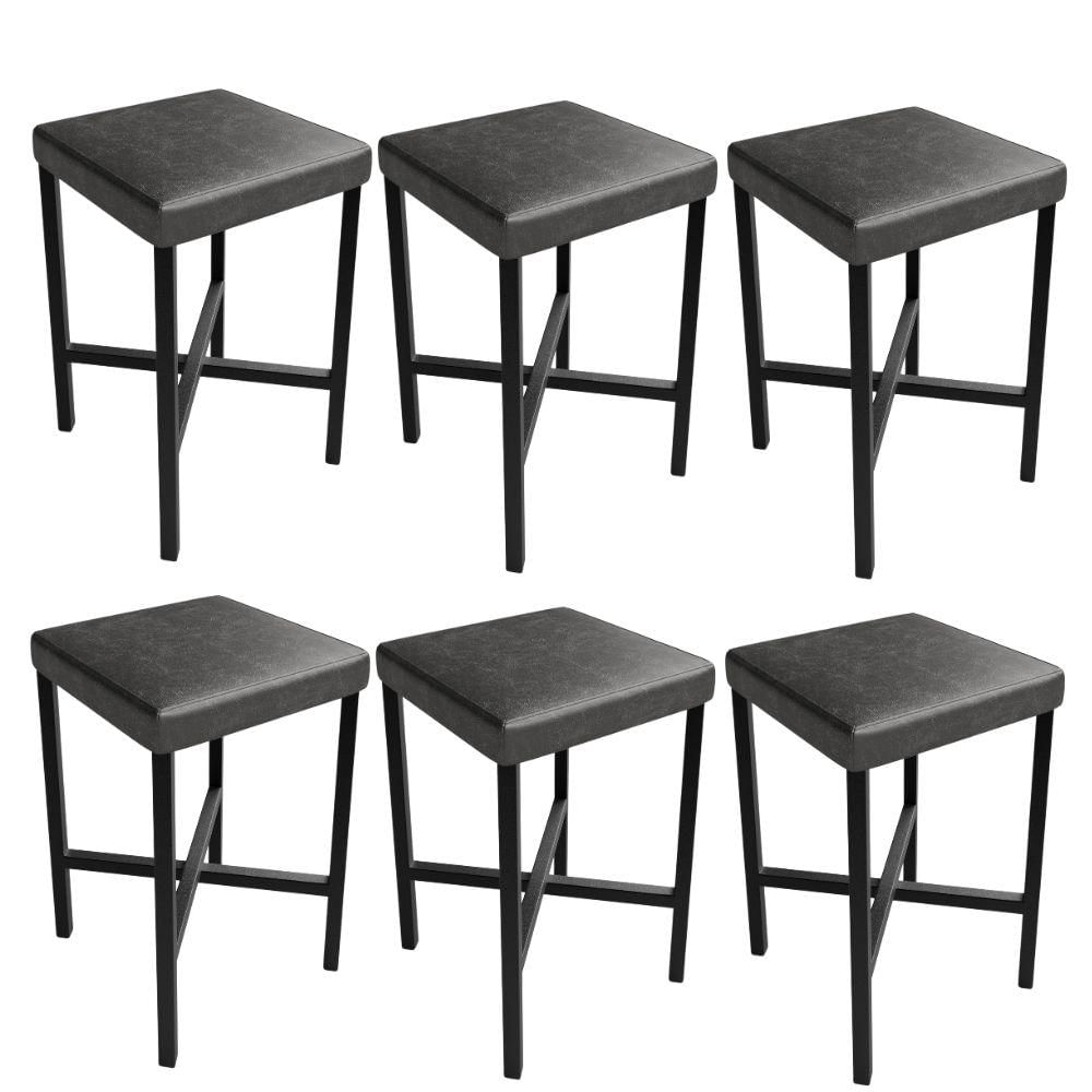 Kit 06 Banquetas Baixa Bar Cozinha Sala De Jantar Preto Stella L02 Couríssimo Preto - Lyam Decor