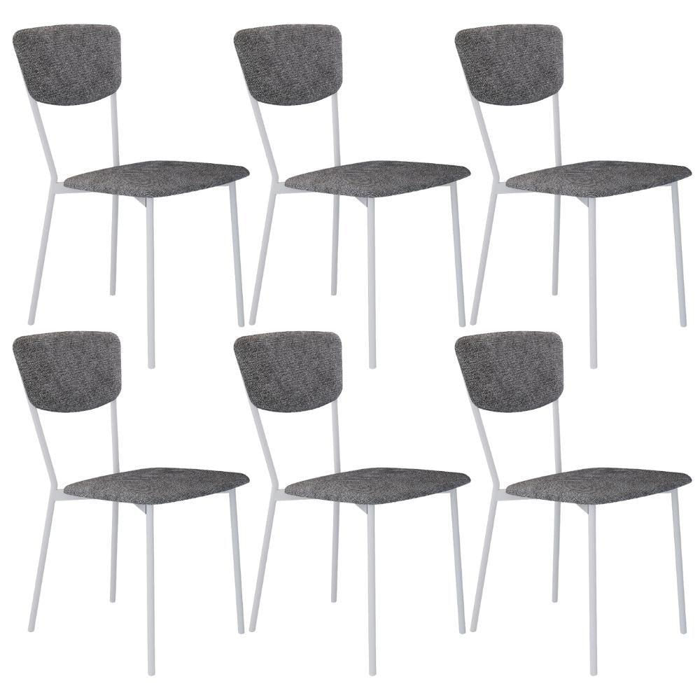 Kit 06 Cadeira Para Sala De Jantar Village Branco C01 Linho Prata - Lyam Decor