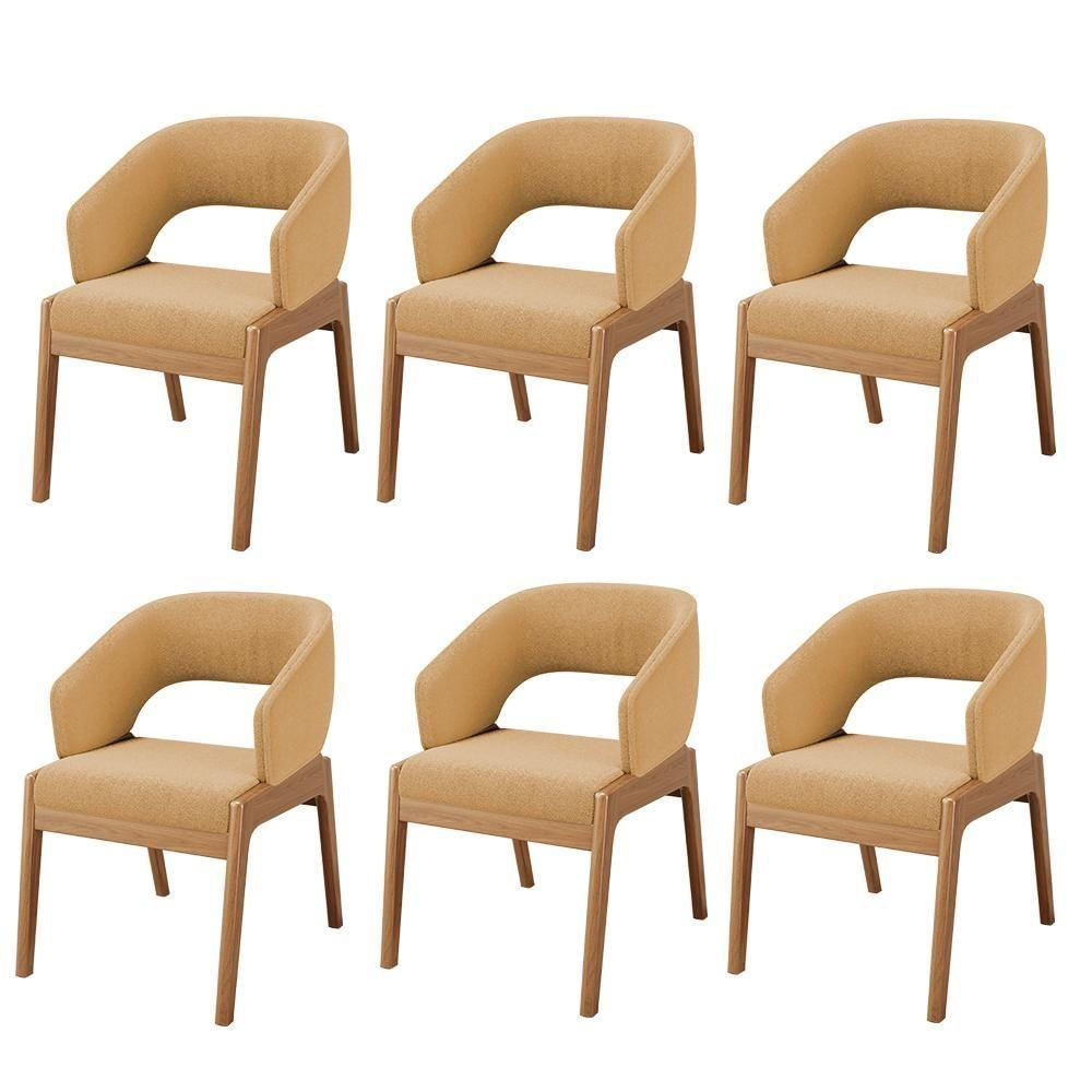 Kit 06 Cadeiras De Jantar E Estar Living Estofada Lince L02 Bouclê Mostarda - Lyam Decor