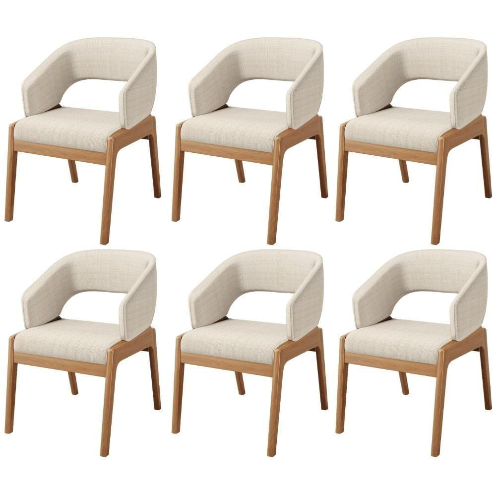 Kit 06 Cadeiras De Jantar E Estar Living Estofada Lince L02 Linho Palha - Lyam Decor