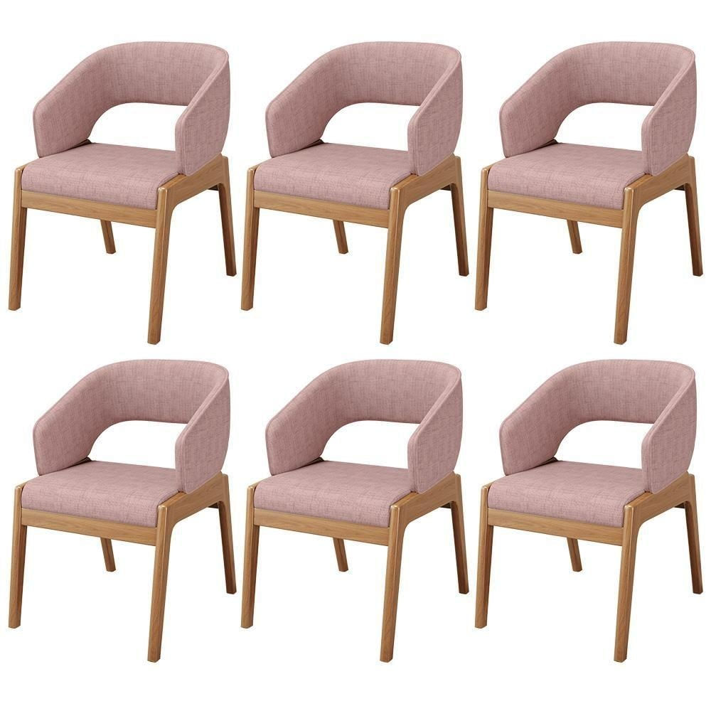 Kit 06 Cadeiras De Jantar E Estar Living Estofada Lince L02 Linho Rosa - Lyam Decor