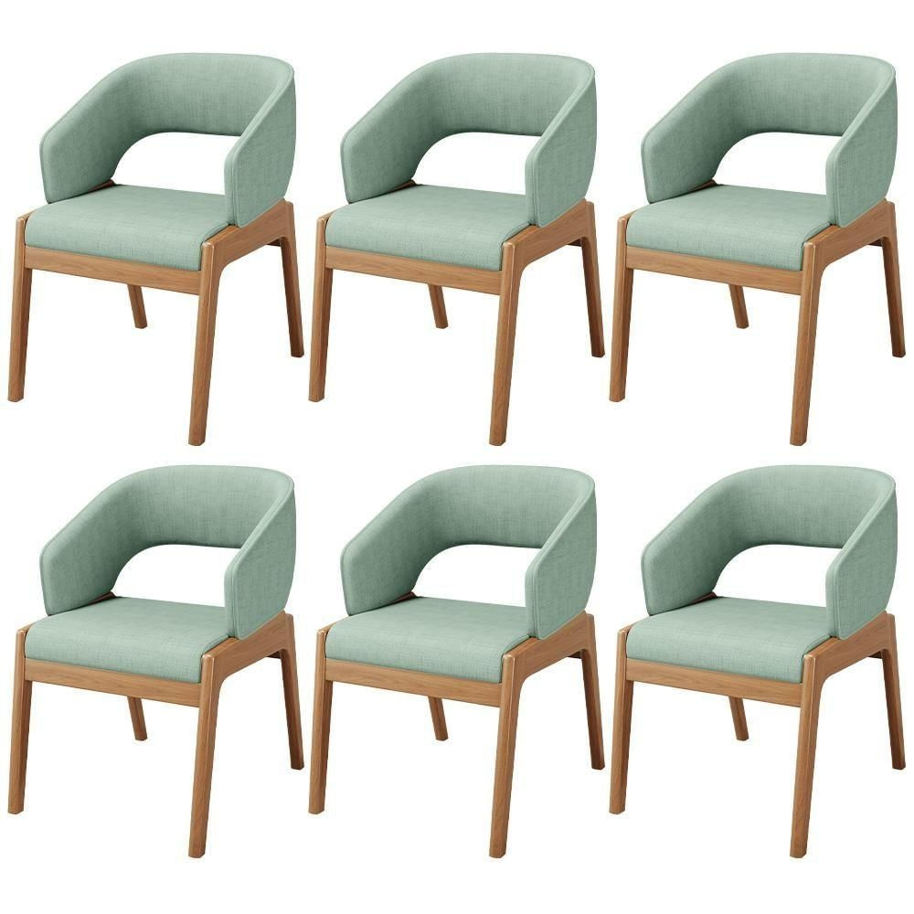 Kit 06 Cadeiras De Jantar E Estar Living Estofada Lince L02 Linho Verde Menta - Lyam Decor