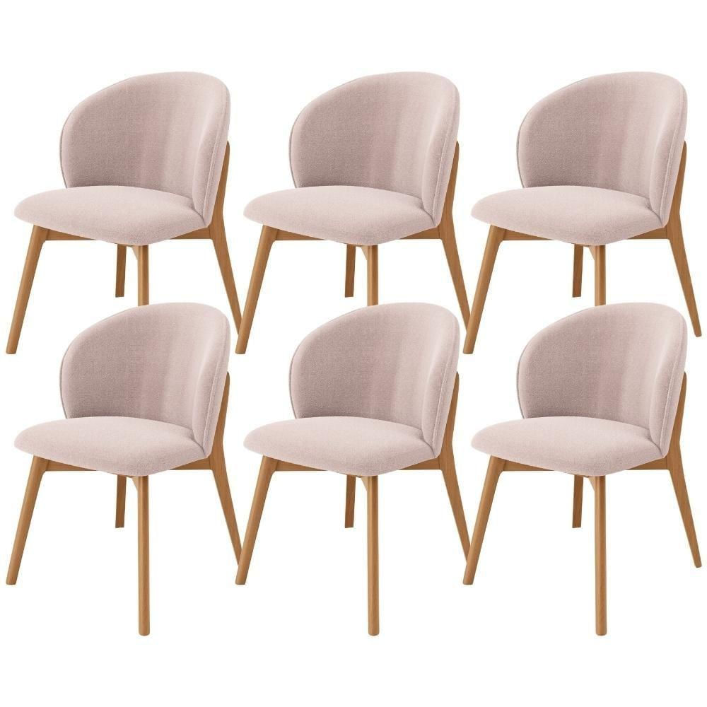 Kit 06 Cadeiras De Jantar E Estar Living Estofada Mia L02 Bouclê Rosê - Lyam Decor