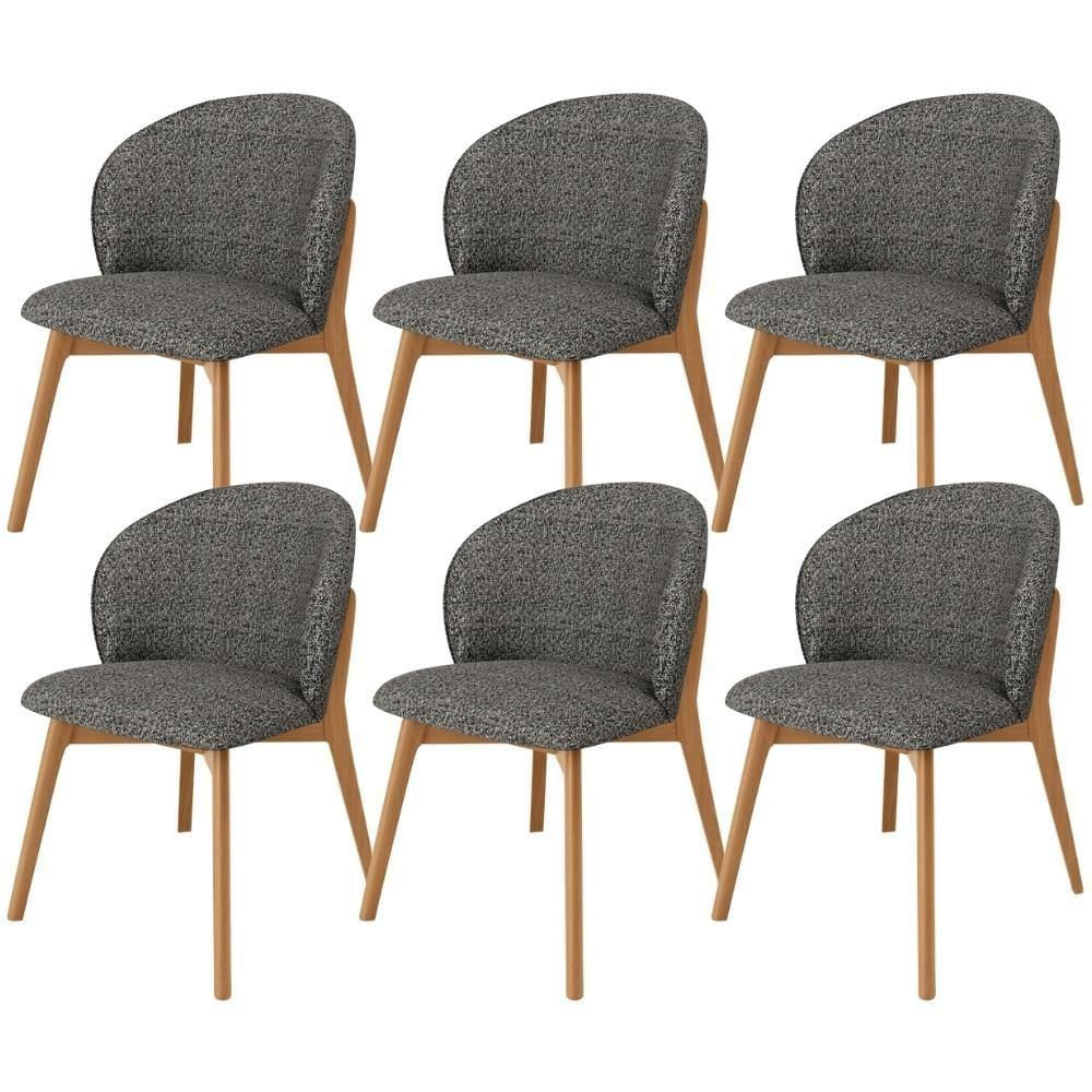 Kit 06 Cadeiras De Jantar E Estar Living Estofada Mia L02 Linho Mescla Chumbo - Lyam Decor