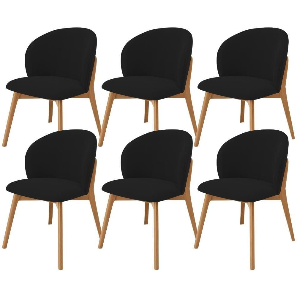 Kit 06 Cadeiras De Jantar E Estar Living Estofada Mia L02 Suede Preto- Lyam Decor