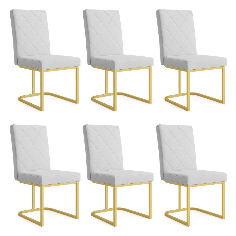 Kit 06 Cadeiras De Jantar Estofada Siena Linho Cinza Base De Ferro Dourada - Pallazio