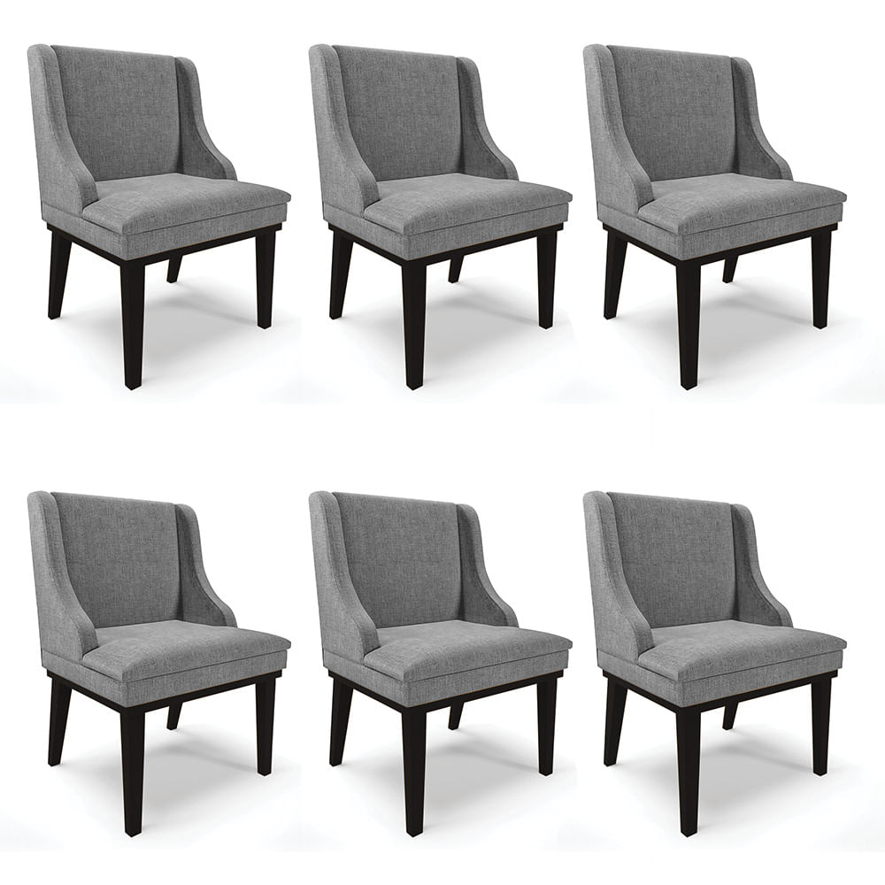 Kit 06 Cadeiras de Jantar Liz Linho Grafite A26 Base Fixa Madeira Preto D03 - D'Rossi