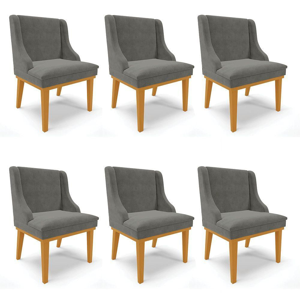 Kit 06 Cadeiras De Jantar Liz Suede Grafite Base Fixa Madeira Castanho - D'rossi