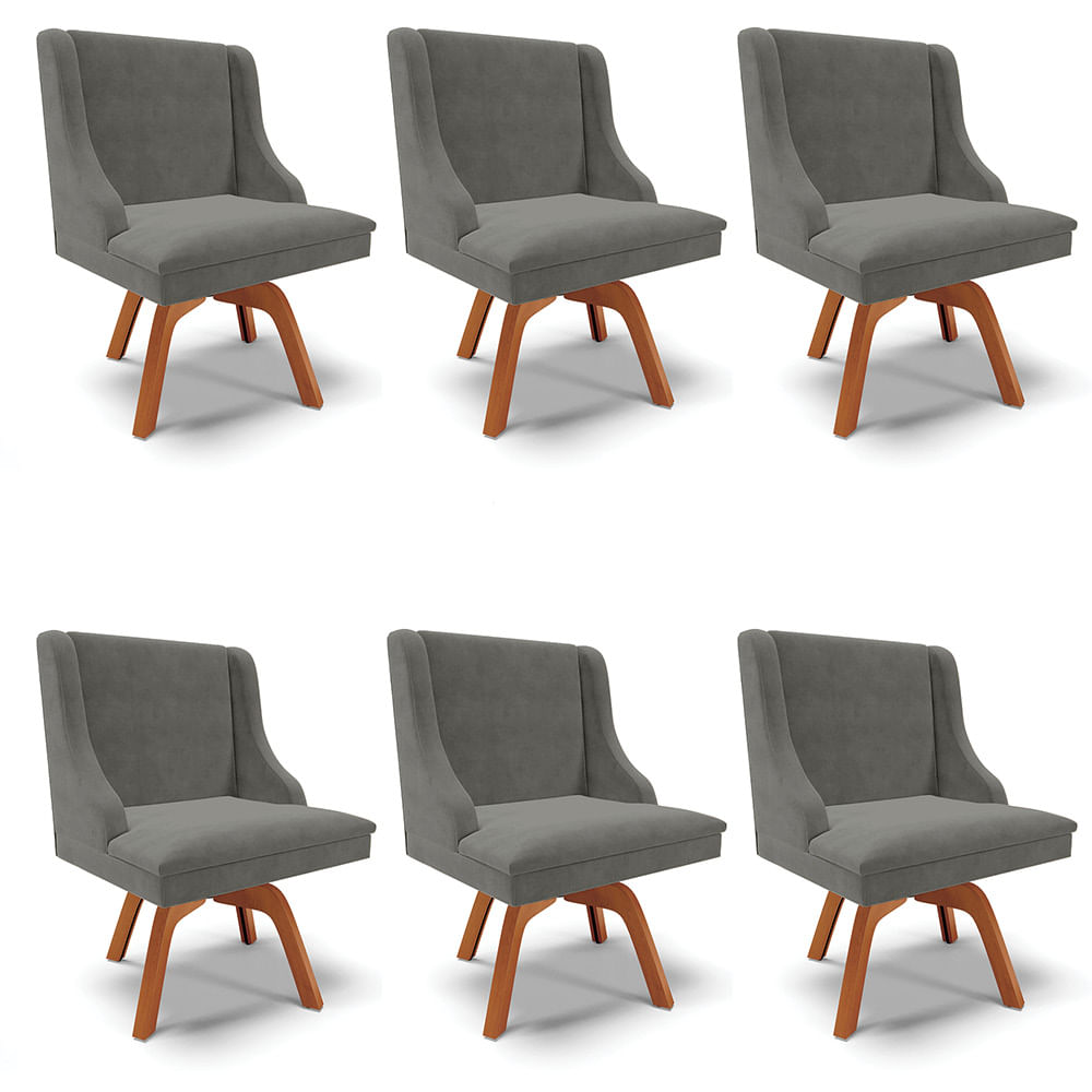 Kit 06 Cadeiras de Jantar Liz Suede Grafite Base Madeira Mm35 D03 - D'Rossi