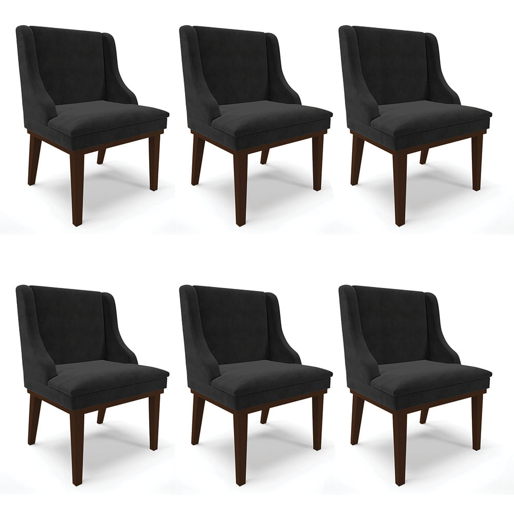 Kit 06 Cadeiras de Jantar Liz Suede Preto Base Fixa Madeira Tabaco D03 - D'Rossi