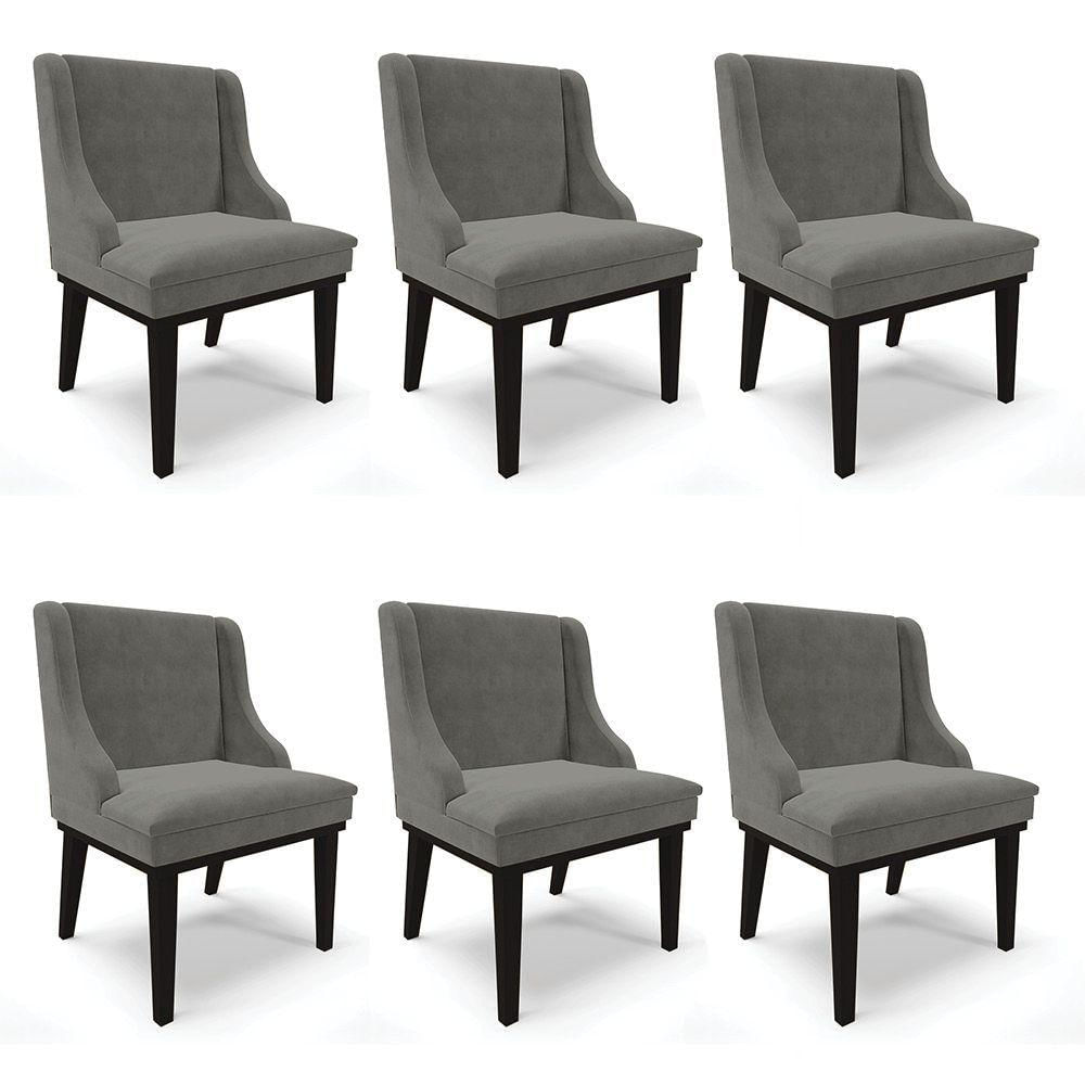 Kit 06 Cadeiras De Jantar Liz Suede Grafite Base Fixa Madeira Preto - D'rossi