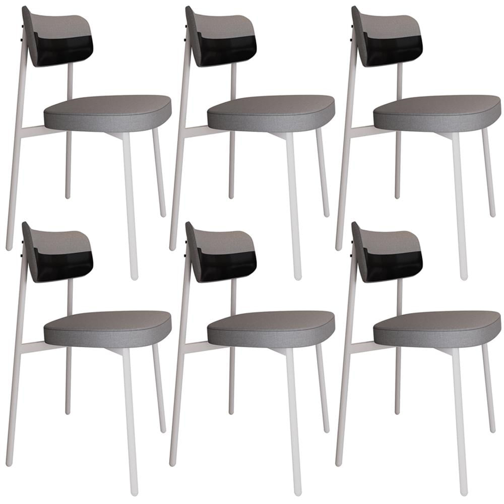 Kit 06 Cadeiras Estofada Para Sala de Jantar Astrid Branco C01 Linho Cinza Courino Preto - Lyam Decor