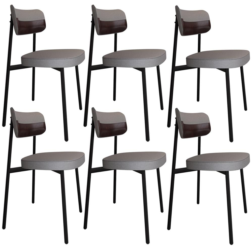 Kit 06 Cadeiras Estofada Para Sala de Jantar Astrid Preto C01 Linho Cinza Courino Café - Lyam Decor