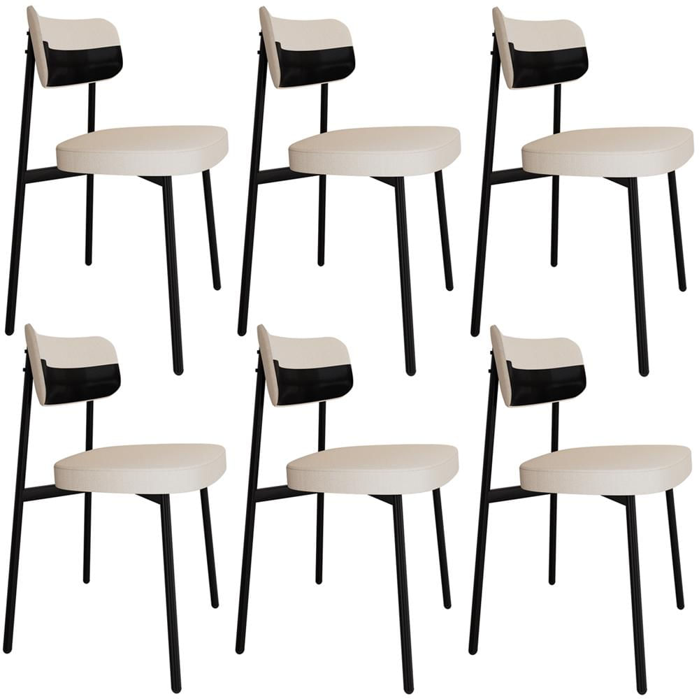 Kit 06 Cadeiras Estofada Para Sala de Jantar Astrid Preto C01 Linho Palha Courino Preto - Lyam Decor