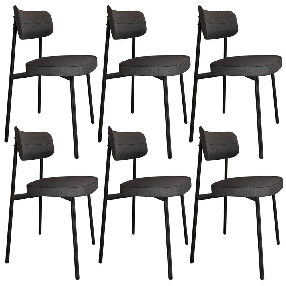 Kit 06 Cadeiras Estofada Para Sala de Jantar Astrid Preto C01 Linho Preto - Lyam Decor