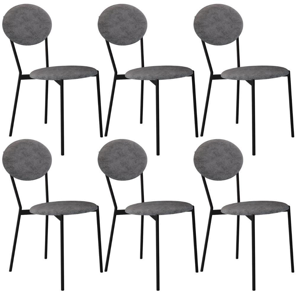 Kit 06 Cadeiras Estofada Para Sala De Jantar Azuri Preto C01 Linho Prata - Lyam Decor
