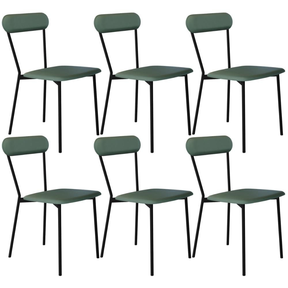 Kit 06 Cadeiras Estofada Para Sala de Jantar Liora Preto C01 Courino Verde Sálvia - Lyam Decor