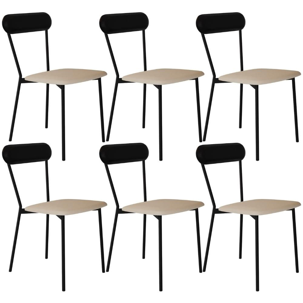 Kit 06 Cadeiras Estofada Para Sala de Jantar Liora Preto C01 Linho Areia Courino Preto - Lyam Decor
