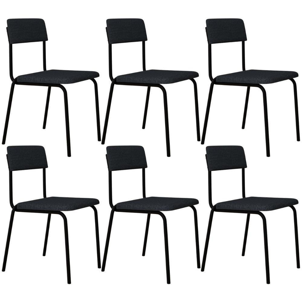 Kit 06 Cadeiras Estofada Para Sala De Jantar Sense Preto C01 Linho Cinza - Lyam Decor