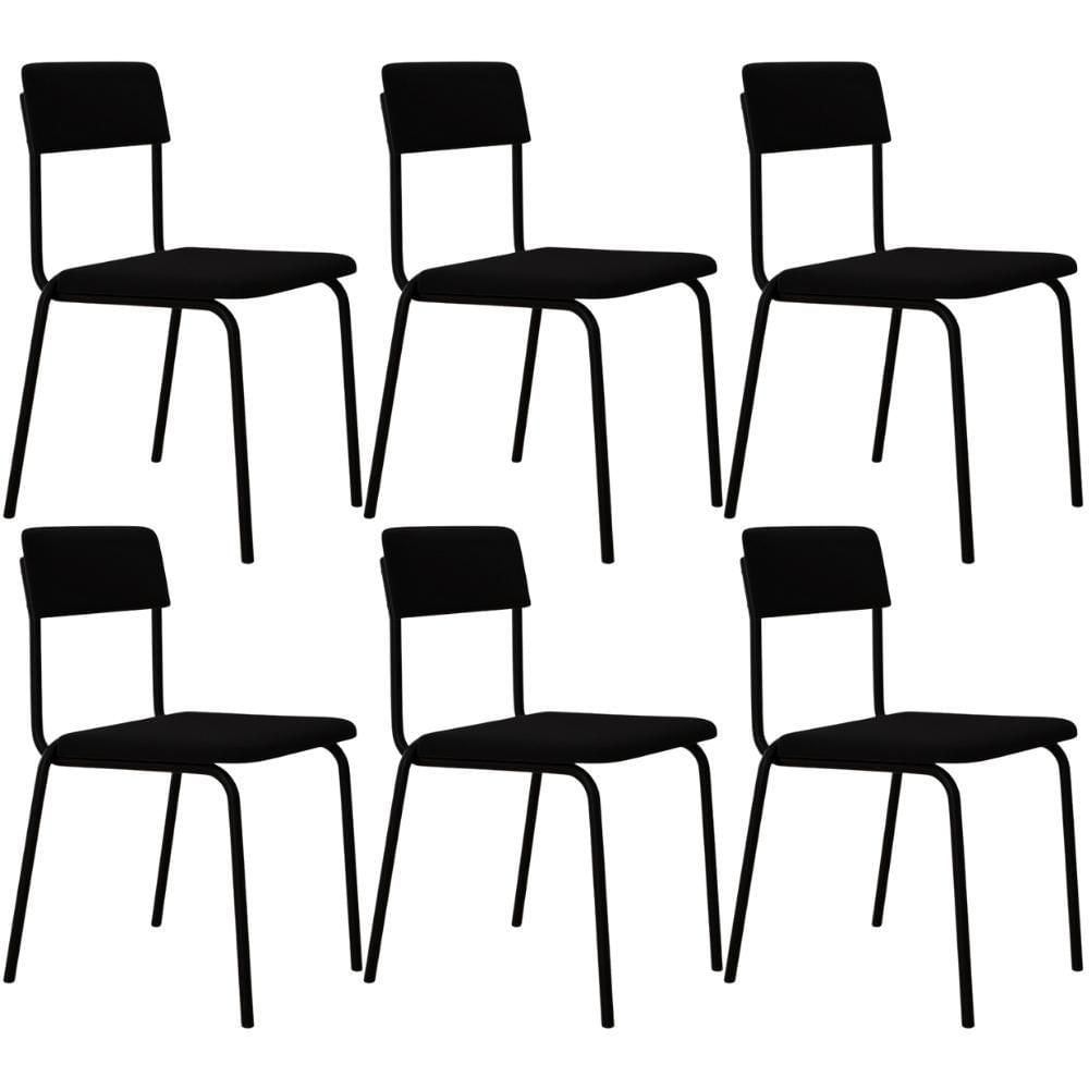 Kit 06 Cadeiras Estofada Para Sala De Jantar Sense Preto C01 Linho Preto - Lyam Decor