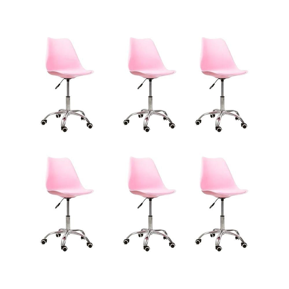 Kit 06 Cadeiras Office Base Cromada Giratória Saarinen Rosa