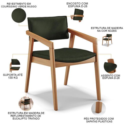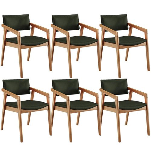 O Kit 06 Cadeiras Para Sala de Jantar Estar Living Giorgia B04 Couríssimo Verde Musgo, da Lyam Decor, é perfeito para adicionar um toque moderno à sala de jantar. Com sua estrutura em madeira maciça envernizada, ela traz durabilidade e estilo para o ambiente. O assento e o encosto estofados e revestidos com tecidos alto padrão proporcionam conforto durante as refeições, além de serem fáceis de limpar.