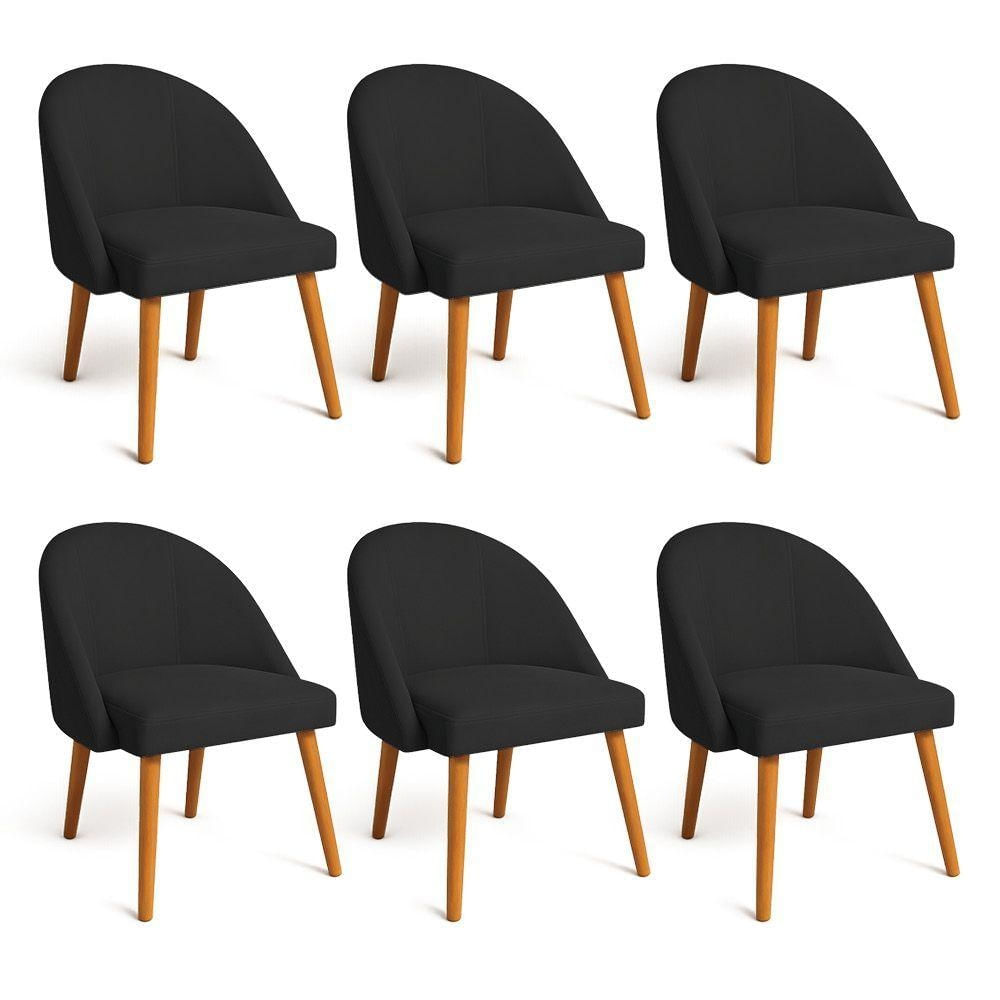 Kit 06 Cadeiras Poltrona De Jantar Luna Suede Preto Pés Palito Castanho - Pallazio