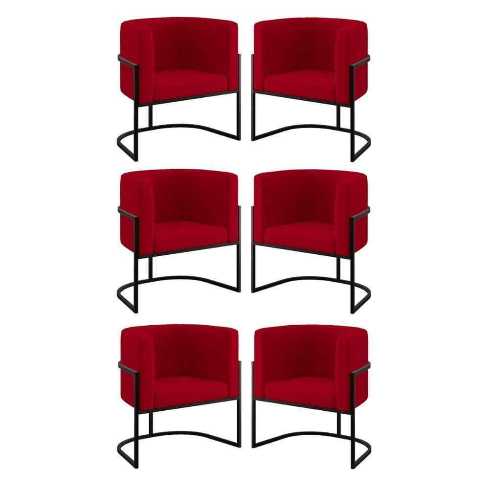 Kit 06 Cadeiras Poltrona Lua Preto Para Sala Quarto Balaqui Cor:vermelho Vermelho