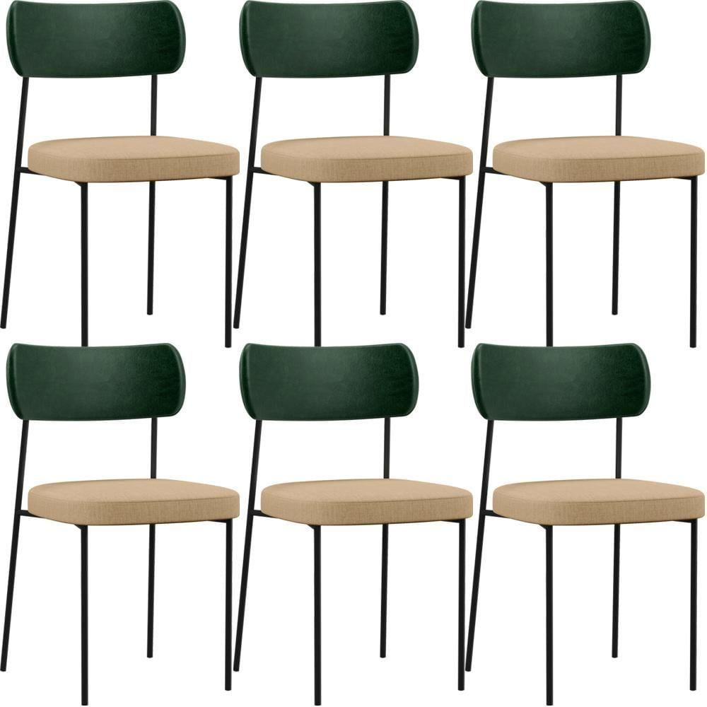 Kit 06 Cadeiras Para Sala De Jantar Melina L02 Facto Verde Musgo Linho Bege Escuro - Lyam Decor