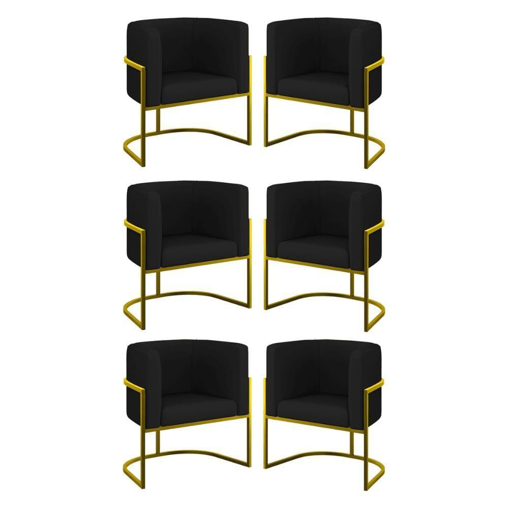 Kit 06 Poltronas Lua Sala Decorativa Base Ferro Gold Corino Cor:preto Preto