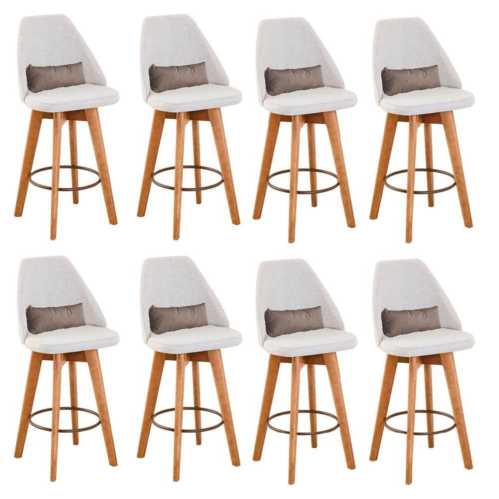 Kit 08 Banquetas Alta Maya Giratória Com Encosto Gourmet Linho Bege e Almofada Corino Bege - Aurora Line