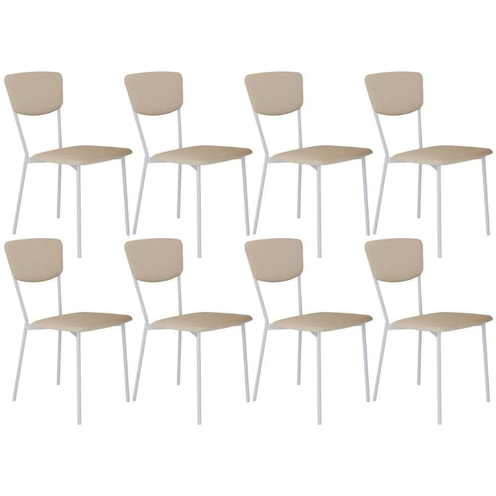 Kit 08 Cadeira Para Sala De Jantar Village Branco C01 Linho Areia - Lyam Decor